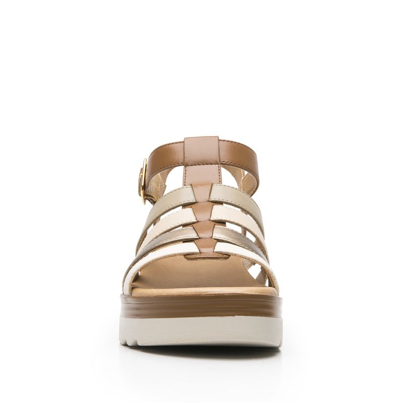 Sandalia Mujer Manaus 127707 Café Multicolor. Sandalia de plataforma elaborada en cuero que cuenta con el sello de comodidad y estilo de zapatos Flexi. Este producto forma parte de nuestra línea casual de sandalias que te permitirán disfrutar de la comodidad de un calzado bajo con una plataforma bicolor. Son ideales si buscas practicidad, estilo y comodidad. Sus diseños son elaborados en cuero. Este calzado cuenta con hebilla, suela de pu pintado, plantilla de cuero y forro ecocuero. Altura máxima 6.1cm. SKU: 127707ARENAMULTICOLOR