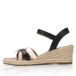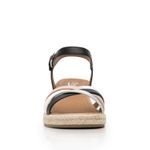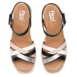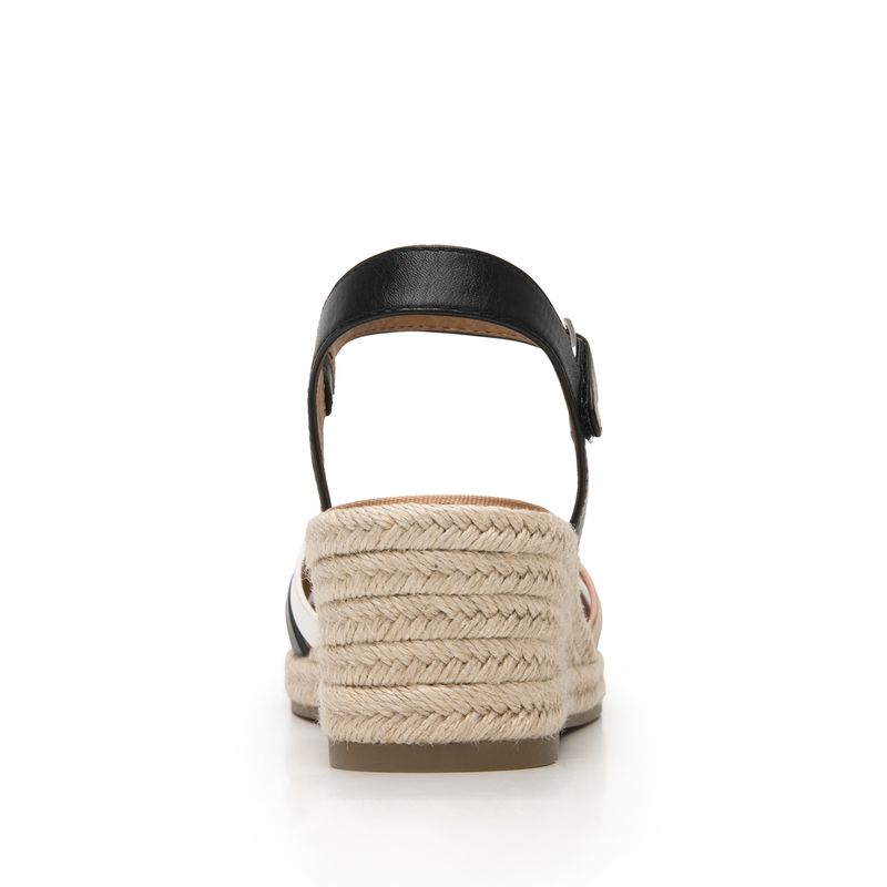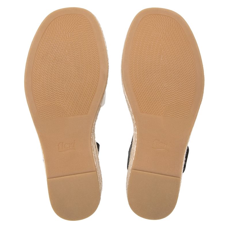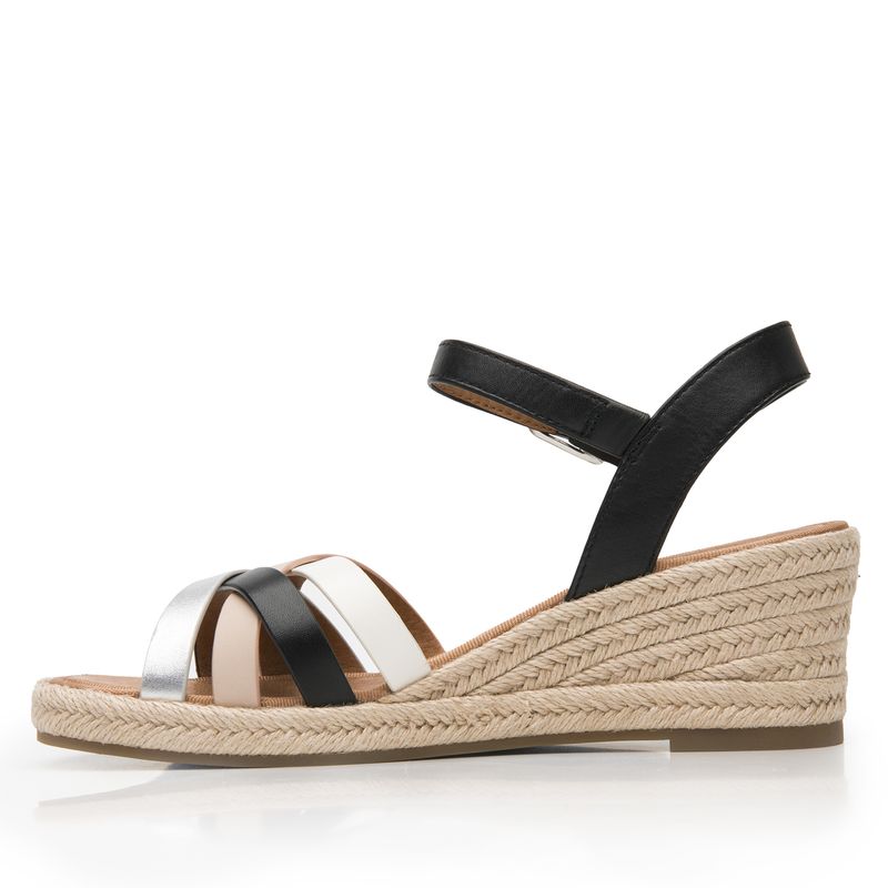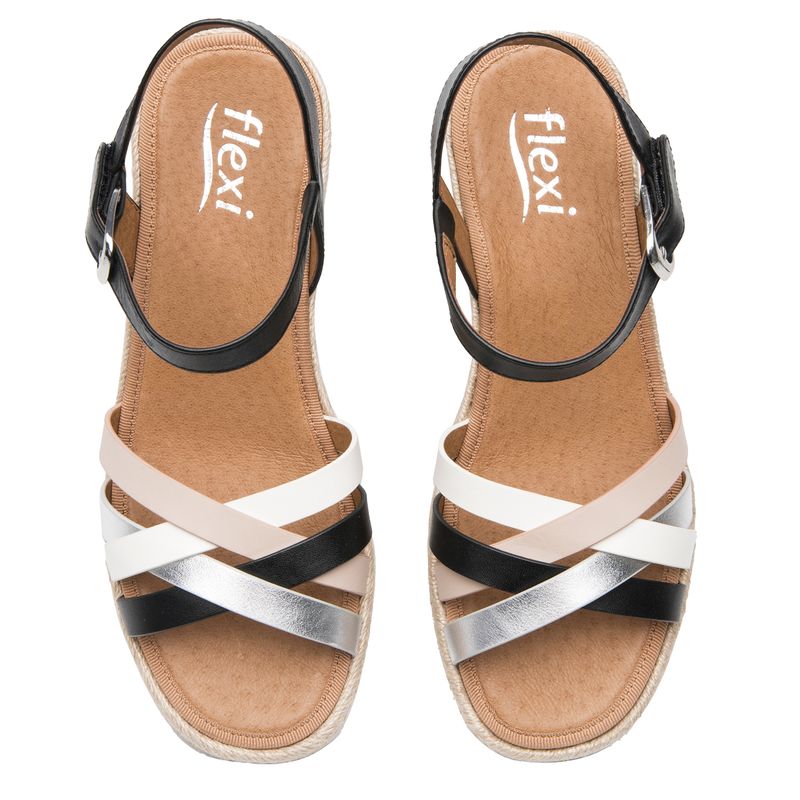 Sandalia Mujer Merida 135402 Negro Y Blanco. Sandalia cuña alta elaborada en textil que cuenta con el sello de comodidad y estilo de zapatos Flexi. Este producto forma parte de nuestra línea de sandalia con cuña baja de yute, con dos estilos: uno con un textil a rayas con un aire náutico y el otro con tiras multicolores que los hacen fáciles de combinar, son perfectos para llevar esta temporada. Este calzado cuenta con hebilla, suela de pu / tpr, una plantilla de cuero y forro ecocuero. Altura 6.5 cm. SKU: 135402NEGROMULTICOLOR