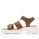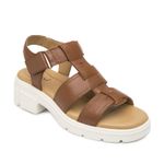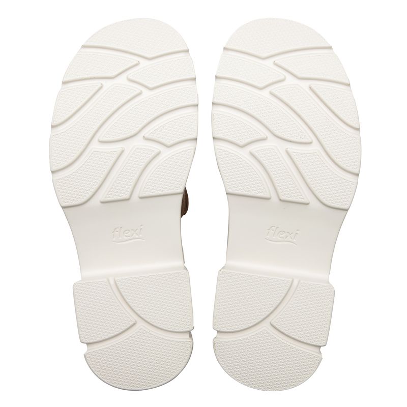 Sandalia Mujer Sidney 133806 Café. Sandalia casual chunky elaborada en cuero que cuenta con el sello de comodidad y estilo de zapatos Flexi. Este producto forma parte de nuestra línea de sandalia chunky, es un estilo protagonista por su suela tipo track y sus cortes con maxi hebillas. Sus dos tiras anchas en la zona del empeine garantizan un ajuste seguro y su plantilla acojinada reduce el impacto y la fatiga. Este calzado cuenta con velcro, suela de pu, una plantilla de cuero y forro ecocuero. Altura 4.9 cm. SKU: 133806TAN