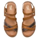 Sandalia Mujer Stephany 135301 Café. Sandalia de plataforma elaborada en cuero que cuenta con el sello de comodidad y estilo de zapatos Flexi. Este producto forma parte de nuestra línea de sandalia con una cuña seccionada que brinda estabilidad al caminar y la altura ideal. El estilo 01 cuenta con velcros para un mejor ajuste y el estilo 02 tiene detalles de estoperoles que sin duda marcan tendencia esta temporada. Este calzado cuenta con una suela de pu / tpr, una plantilla de cuero y forro ecocuero. Altura 3.8 cm. SKU: 135301TAN