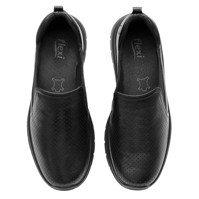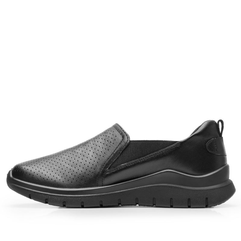 Zapatilla Mujer Azure 130210 Negra. Zapatilla versátil elaborada en cuero de alta calidad que se adapta con facilidad a cualquier ocasión. La línea AZURE destaca por su diseño funcional y femenino, pensado para ofrecer confort y suavidad durante toda la jornada. Su construcción de inyección directa brinda ligereza y resistencia, mientras su plantilla acolchada y materiales suaves envuelven el pie en una sensación de bienestar constante. Perfecto para un look relajado con el sello de comodidad de Flexi. Altura de la suela 4.5cm. SKU: 130210NEGRO