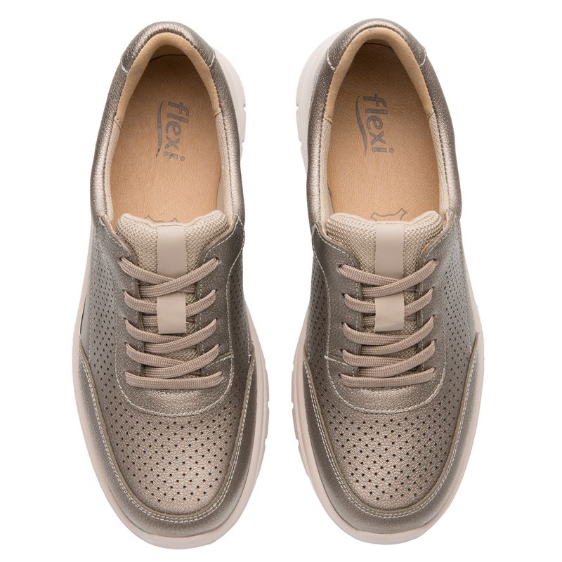 Zapatilla Mujer Azure 130211 Antimonio. Zapatilla versátil elaborada en cuero de alta calidad que se adapta con facilidad a cualquier ocasión. La línea AZURE destaca por su diseño funcional y femenino, pensado para ofrecer confort y suavidad durante toda la jornada. Su construcción de inyección directa brinda ligereza y resistencia, mientras su plantilla acolchada y materiales suaves envuelven el pie en una sensación de bienestar constante. Perfecto para un look relajado con el sello de comodidad de Flexi. Altura de la suela 4.5cm. SKU: 130211ANTIMONIO