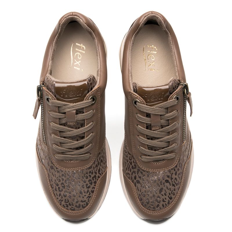 Zapatilla Mujer Koan 138301 Taupe. Zapatilla tipo derby casual elaborada en ecocuero / textil que cuenta con el sello de comodidad y estilo de zapatos Flexi. Este producto forma parte de nuestra línea de zapatillas para dama que brindan la comodidad de unos tenis pero con un estilo casual. Su suela cuenta con un poco de altura que proporciona comodidad y su combinación de materiales gran estilo para el uso diario. Sus estilos son ideales para quienes buscan un calzado cómodo y estilizado. Este calzado cuenta con cordones, suela de tpr bicolor, una plantilla de cuero y forro textil. Altura 5.3 cm. SKU: 138301TAUPE