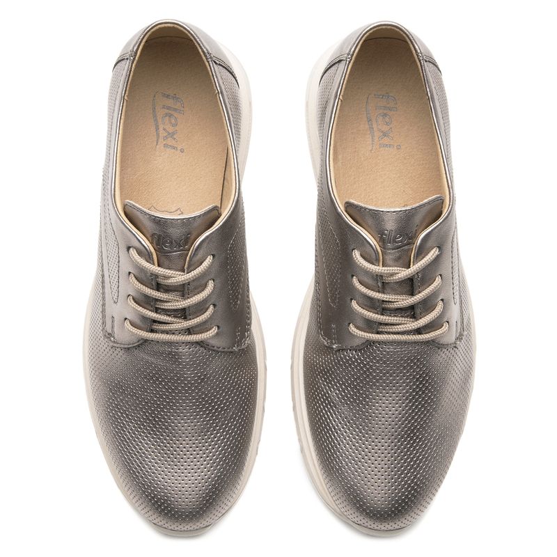 Zapatilla Mujer Mildred 137003 Dorada. Zapatilla tipo derby casual elaborada en cuero que cuenta con el sello de comodidad y estilo de zapatos Flexi. Este producto forma parte de nuestra línea casual de dama con diseños en cuero, en colores clásicos y metálicos. Es un clásico versátil para tus looks diarios. Este calzado cuenta con cordones, suela de tr expanso / tr compacto, una plantilla de cuero y forro textil. Altura 3.7 cm. SKU: 137003ANTIMONIO