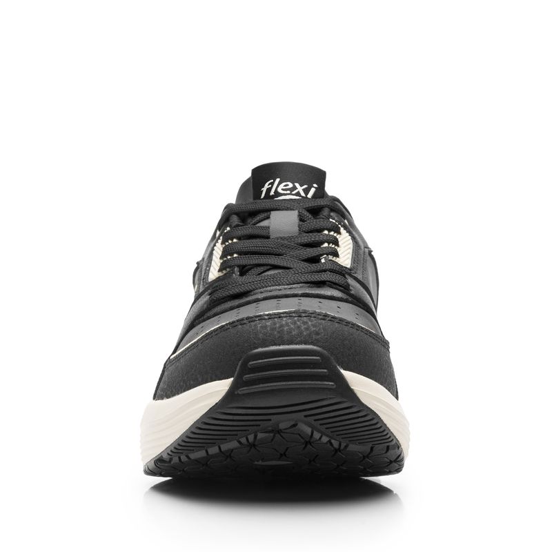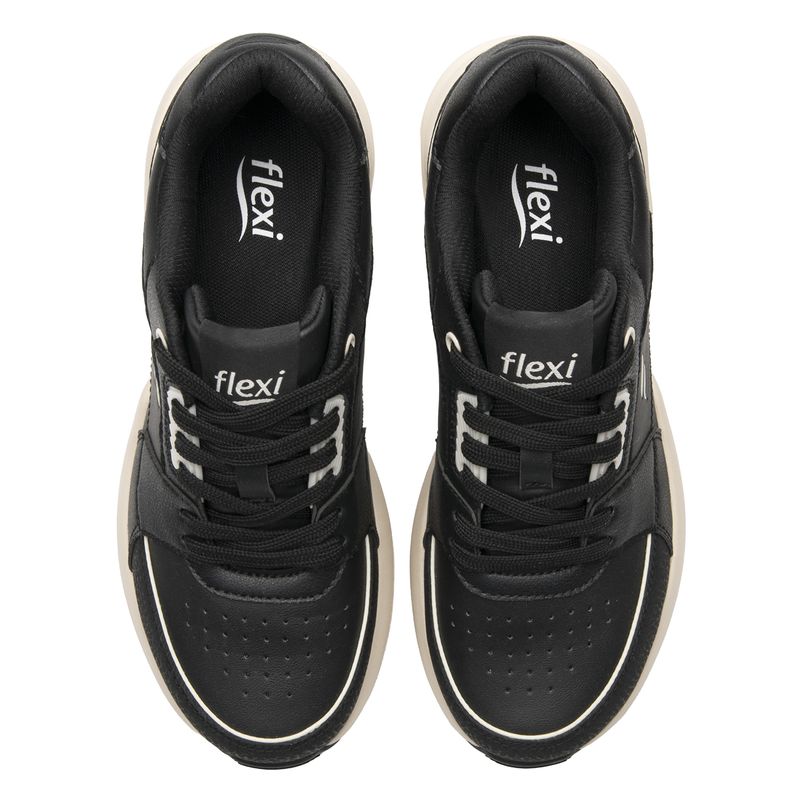 Zapatilla Mujer Saluma 131503 Negra. Zapatilla con capsula de aire elaborada en ecocuero que cuenta con el sello de comodidad y estilo de zapatos Flexi. Este producto forma parte de nuestra línea de inspiración deportiva con un aire femenino por su propuesta en tonos otoñales. Ofrece gran estabilidad y comodidad al caminar, por su cápsula de aire. Este calzado cuenta con cordones, suela de eva / hule c/cápsula, una plantilla de textil y forro textil. SKU: 131503NEGRO