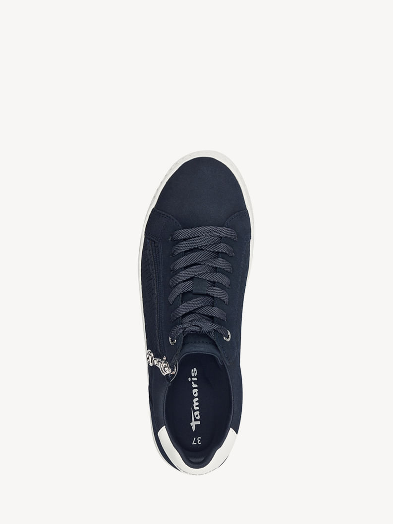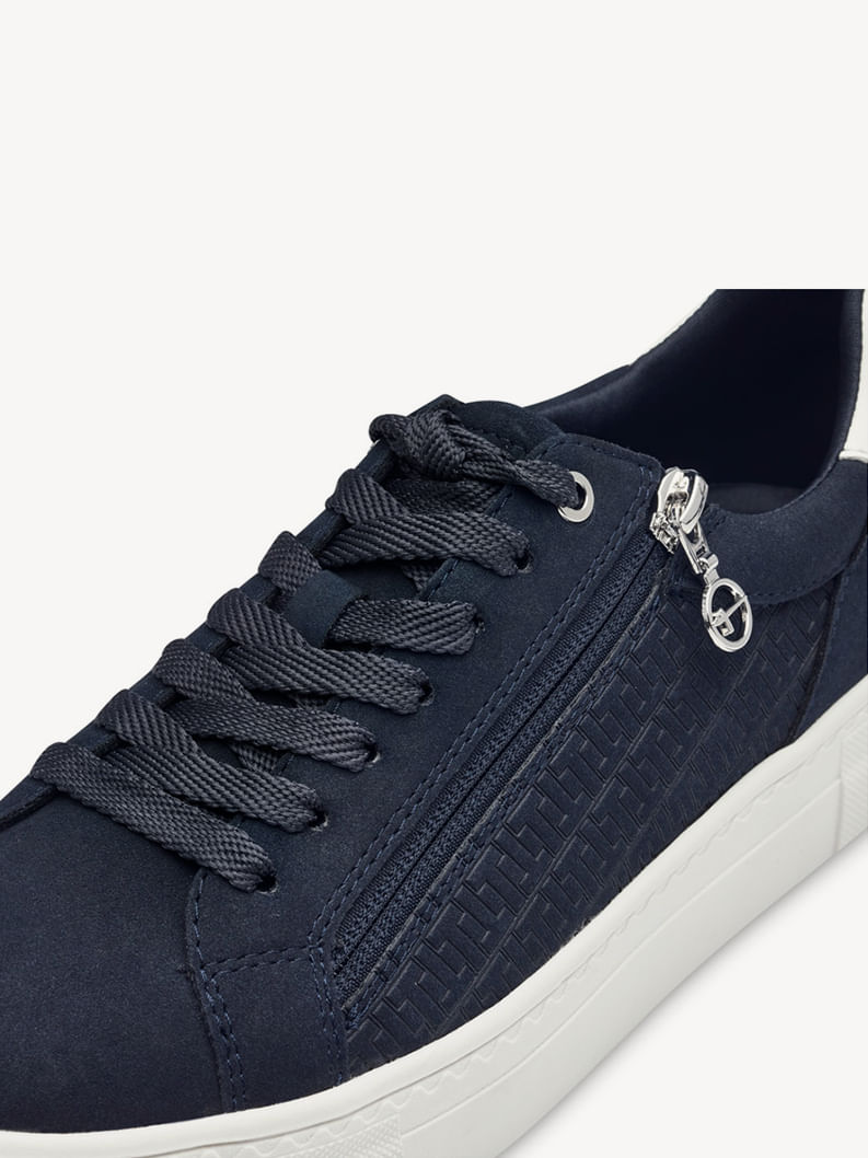 Zapatilla Mujer Tamaris 23313-41 Azul. Estas zapatillas ofrecen un estilo moderno y versátil para cualquier ocasión. Su diseño elegante cuenta con detalles en relieve sobre el lateral, una cómoda cremallera metálica que facilita ponerlas y quitarlas, y una suela blanca gruesa que aporta comodidad durante todo el día. El detalle en blanco en la parte trasera les da un contraste atractivo y actual. SKU: 2331341AZUL