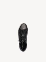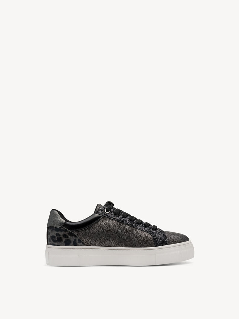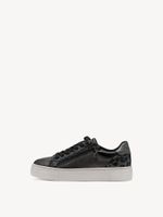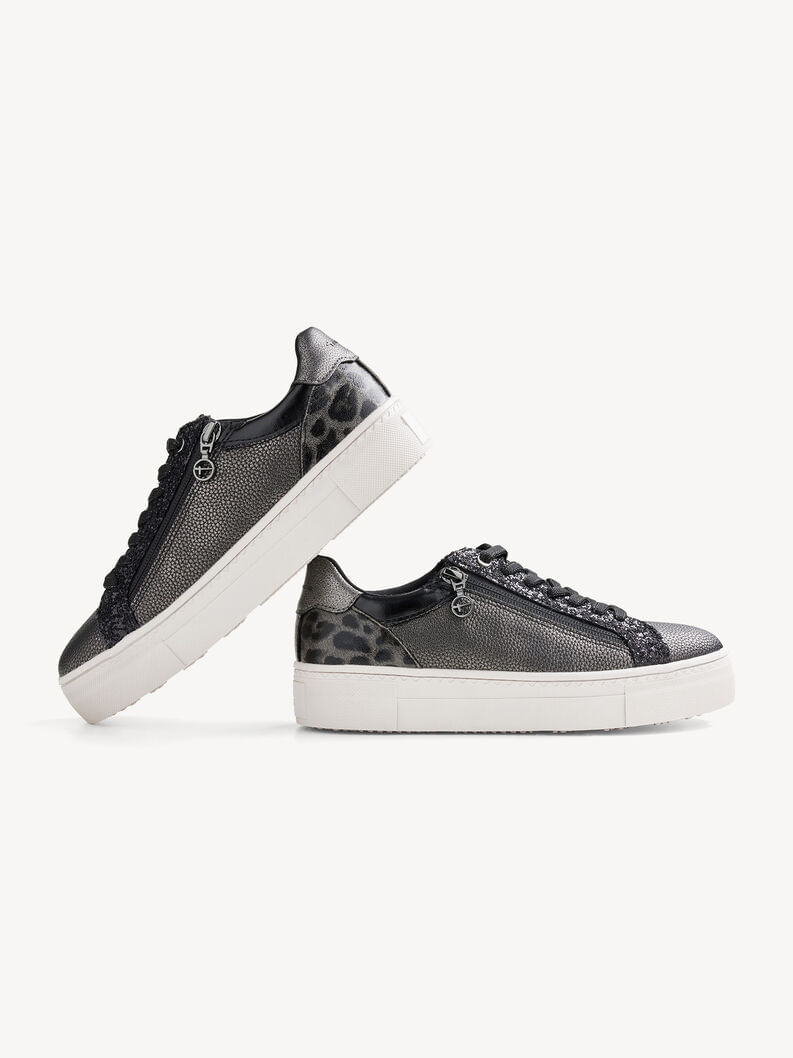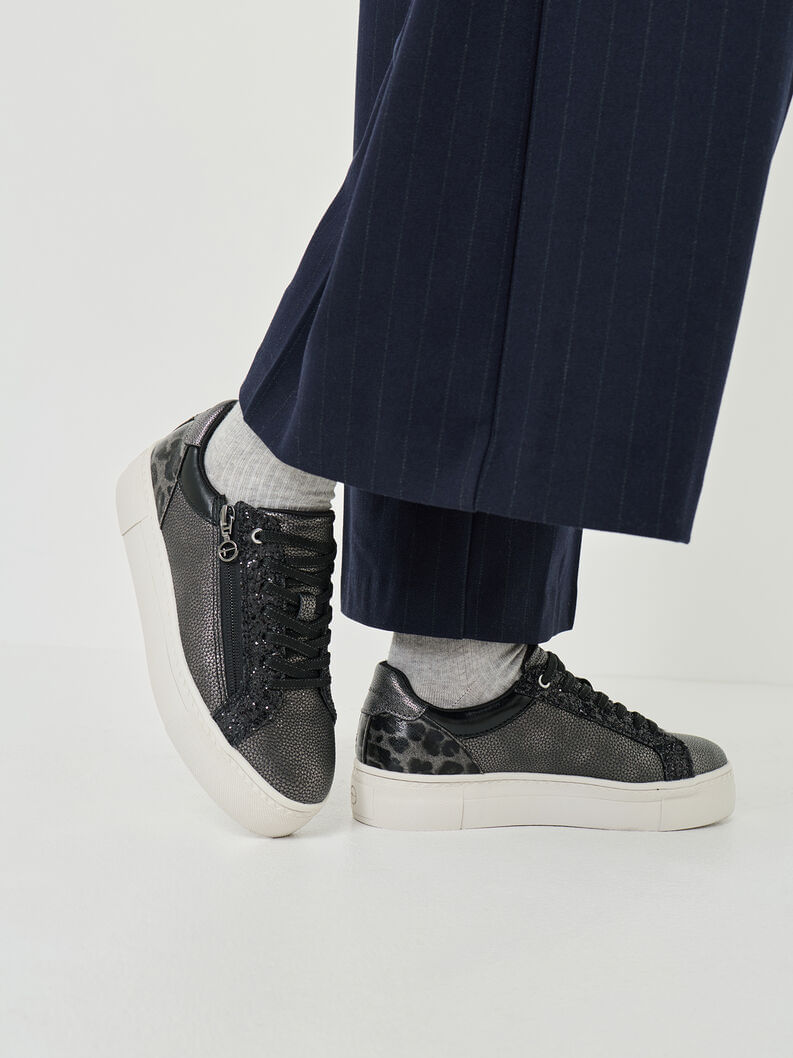 Zapatilla Mujer Tamaris 23313-41 Negro Satín. Estas zapatillas destacan por su originalidad y estilo urbano. Están fabricadas en tonos oscuros con acabado texturizado y detalles brillantes en los cordones y laterales, lo que les da un toque moderno y diferente. Incorporan un cierre lateral con cremallera metálica para mayor comodidad, y la suela blanca aporta contraste y frescura al diseño. En la parte trasera, presentan detalles de estampado animal, añadiendo personalidad y carácter al calzado. Perfectas para quienes buscan un look casual con un punto atrevido y único. SKU: 2331341ESTAÑOCOMB