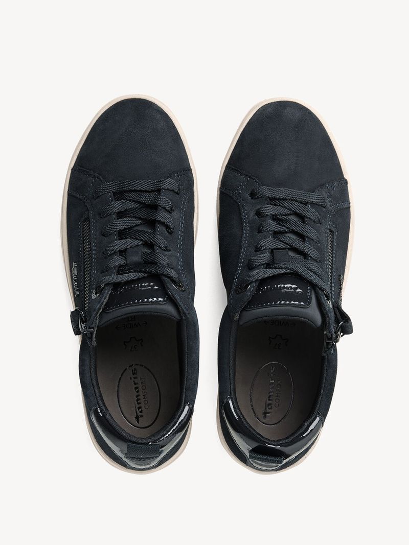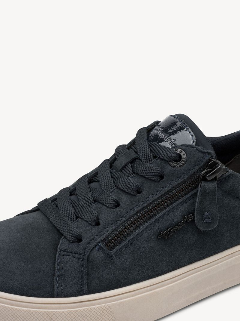 Zapatilla Mujer Tamaris 83707-42 Azul. Estas zapatillas confeccionadas en cuero combinan practicidad y estilo casual para el uso diario. Su diseño destaca por la cremallera lateral decorativa y los cordones que facilitan el ajuste, mientras que el tirador trasero y el refuerzo metálico en el talón aportan un toque moderno y funcional. Son ideales para quienes buscan un calzado versátil, cómodo y fácil de combinar con looks relajados o urbanos. SKU: 8370742AZUL