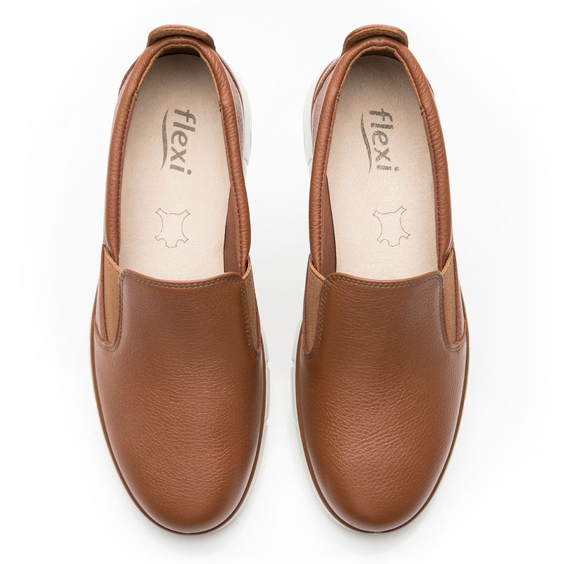 Zapatilla Mujer Turan 137904 Café. Zapatilla confort elaborada en cuero que cuenta con el sello de comodidad y estilo de zapatos Flexi. Este producto forma parte de nuestra línea de inyección directa con estilos versátiles y cómodos. Todos son en corte de cuero y son ideales para llevar durante el día. Su suela de inspiración sport, corrida y ligera, te dará ese look actual. Este calzado cuenta con elástico, suela de pu, una plantilla de cuero y forro textil. SKU: 137904TAN