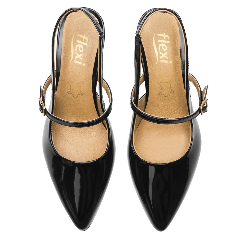 Zapato Mujer Idris 104519 Negro. Zapato destalonado elaborado en ecocuero que cuenta con el sello de comodidad y estilo de zapatos Flexi. Este producto forma parte de nuestra línea de dama semiformal de horma puntal, un "must" para la temporada que da un look moderno y elegante. Su diseño la hace perfecta para toda ocasión. Esta temporada se renueva con un estilo tipo Mary Jane y charoles que destacan como tendencia. Este calzado cuenta con hebilla, suela de abs - tpu / hule, una plantilla de cuero y forro de cuero. Altura 7.4 cm. SKU: 104519NEGRO