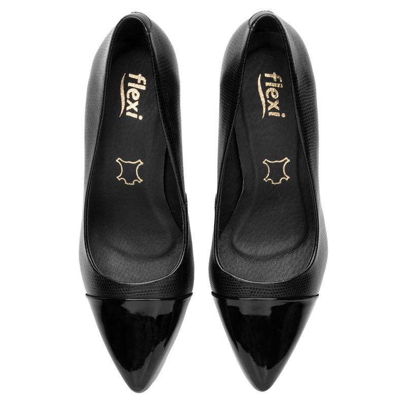 Zapato Mujer Idris 104521 Negro. Zapato elaborado en ecocuero que cuenta con el sello de comodidad y estilo de zapatos Flexi. Este producto forma parte de nuestra línea de dama semiformal de horma puntal, un "must" para la temporada que da un look moderno y elegante. Su diseño la hace perfecta para toda ocasión. Esta temporada se renueva con cortes y detalles metálicos, además de un estilo con puntera que destacan como tendencia este Otoño / Invierno. Este calzado cuenta con una suela de abs / hule, una plantilla de cuero y forro cuero. SKU: 104521NEGRO